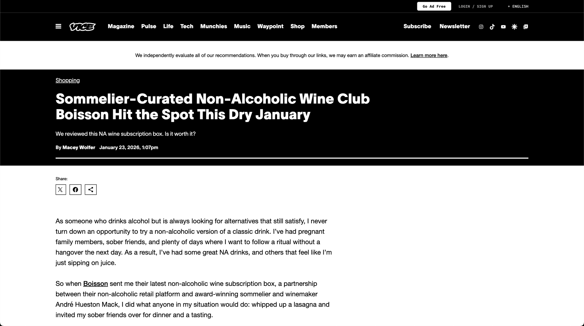 Sommelier-Curated Non-Alcoholic Wine Club Boisson Hit the Spot This Dry January