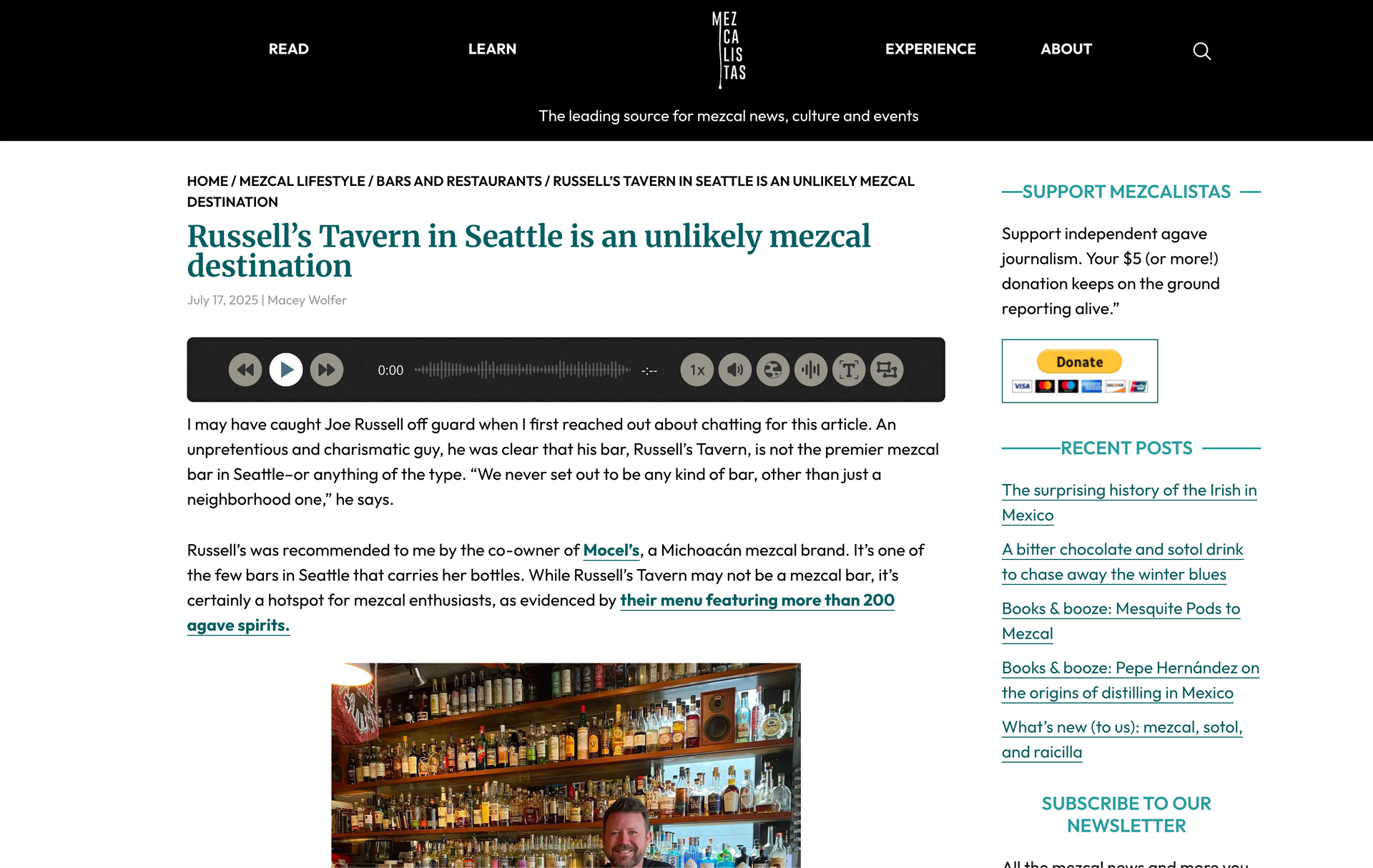 Russell’s Tavern in Seattle is an unlikely mezcal destination
